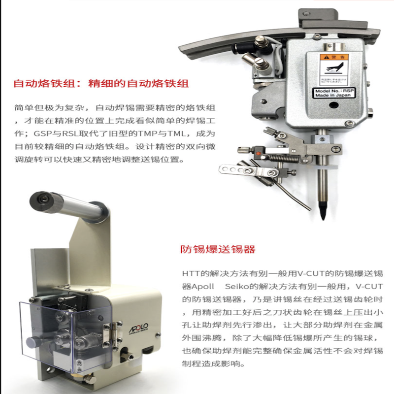 防爆錫送錫器的解決方法有別一般用V-CUT的防錫爆送錫器,乃是將錫絲在經(jīng)過(guò)送錫齒輪時(shí),用精密加工后之刀狀齒輪在錫絲上壓出小孔讓助焊劑先行滲出,讓大部分助焊劑在金屬外圍沸騰,除了大幅降低錫爆所產(chǎn)生的錫球,也確保助焊劑能完整確保金屬活性,不會(huì)對(duì)焊錫制程造成影響。